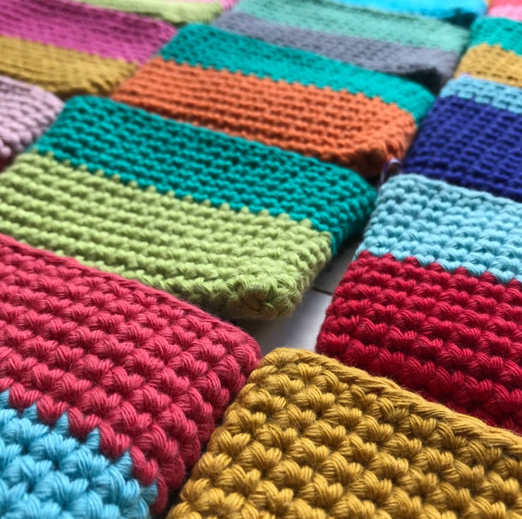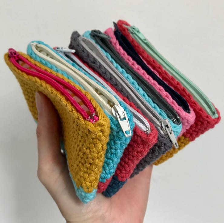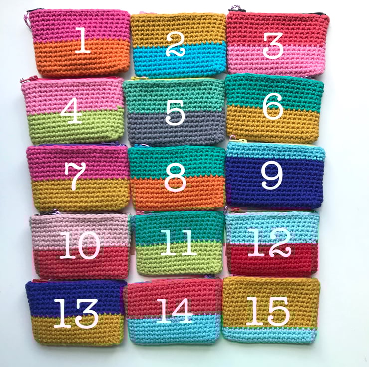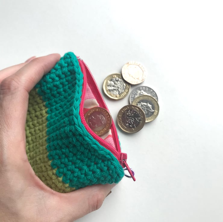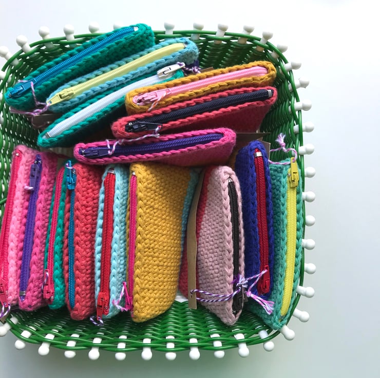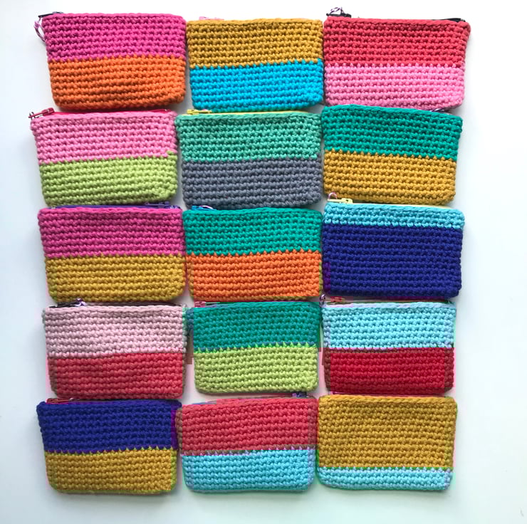Bright, cheerful and practical, these crocheted purses will come in handy for keeping change safe, or for holding little bits and bobs in your handbag. The purses feel chunky and sturdy in your hand, they would make a cute gift for a child, or a little treat for a lover of colour and crochet!