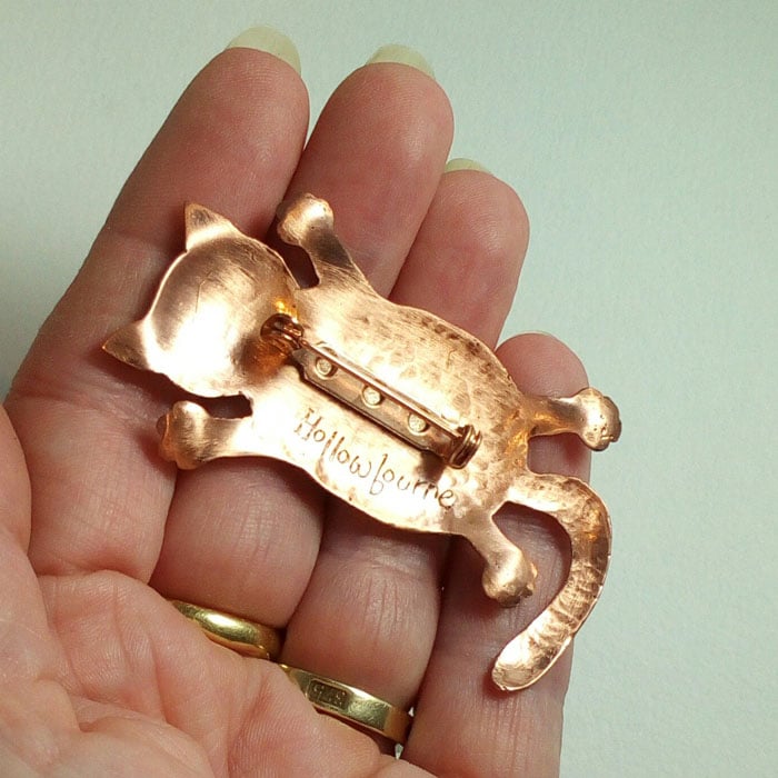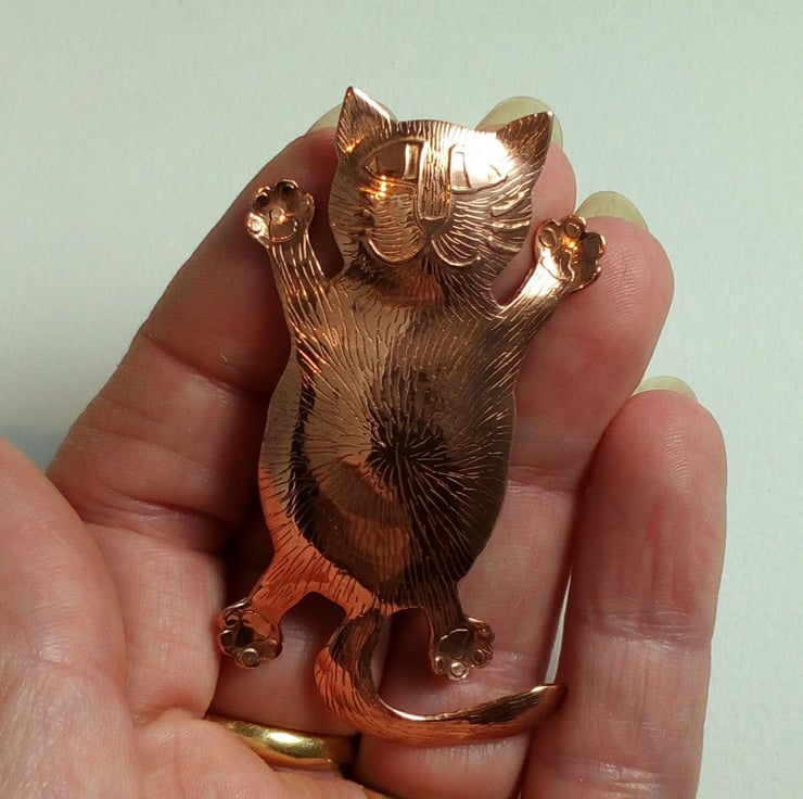 Cute hand cut, drawn and etched fat cat made of sheet copper.