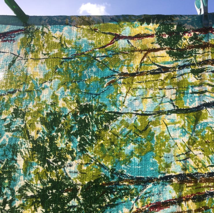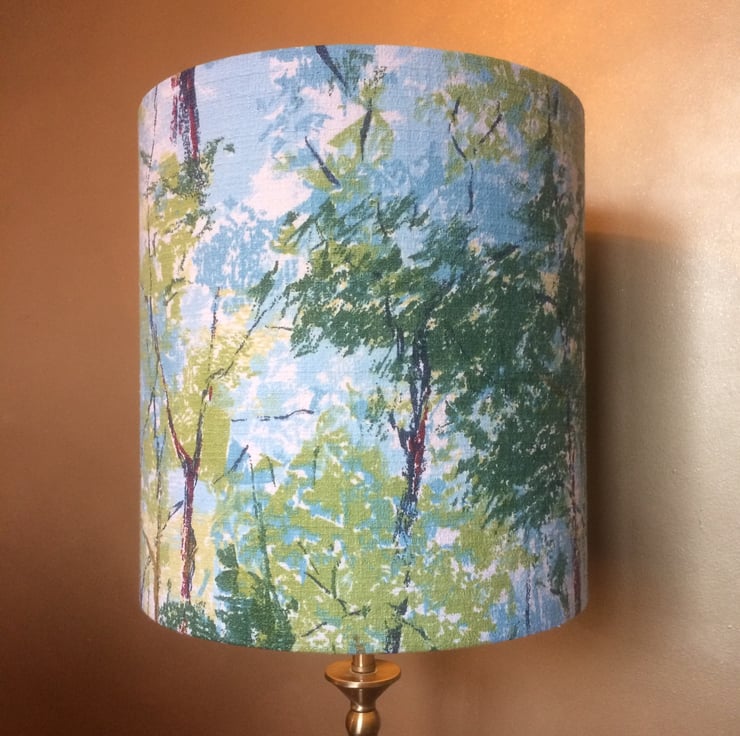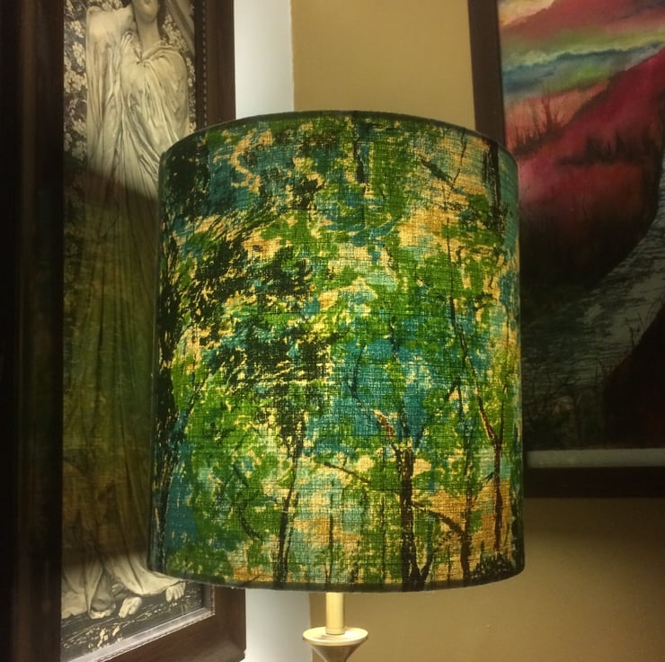 STUNNING Green Woodland Forest Retro Barkcloth VIntage Fabric Lampshade
