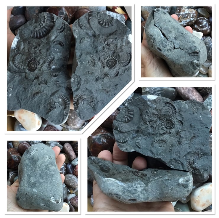 The fossil has been split, cleaned slightly after retrieving from the ground to remove extraneous rock, debris & removal of overly sharp edges & to highlight the stunning ammonites, but otherwise has been left as near to possible as it was found.