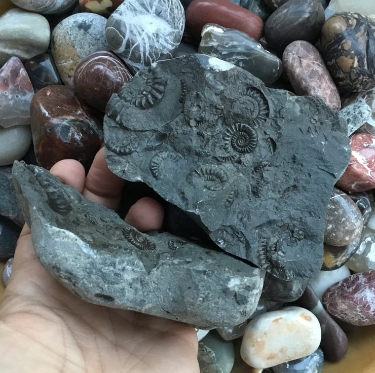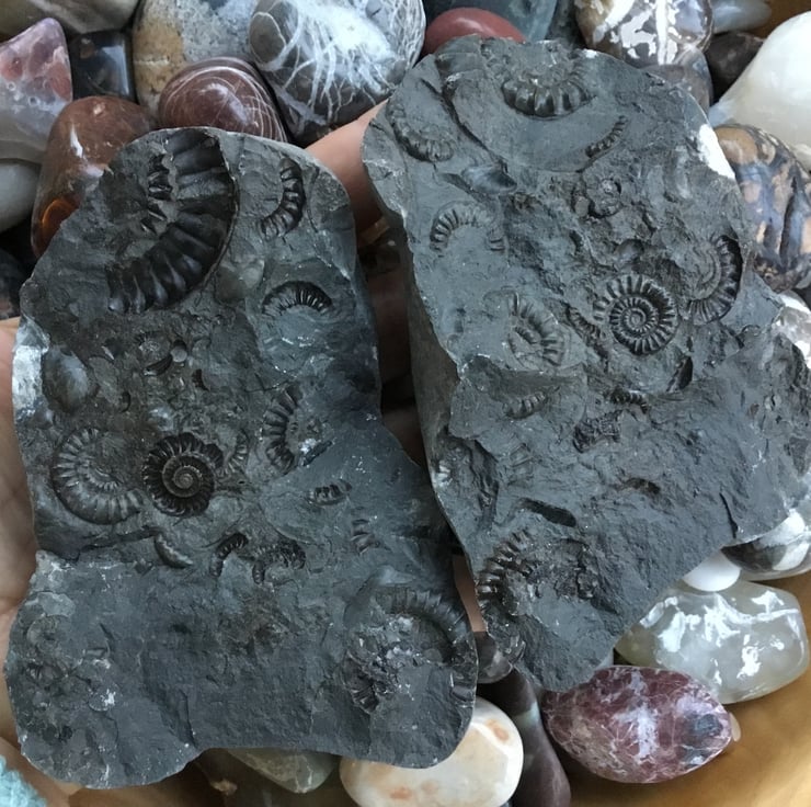 Ammonites were located in our seas & oceans over 150 million years ago & now found abundantly as fossils in special locations such as the Jurassic coast in Dorset.