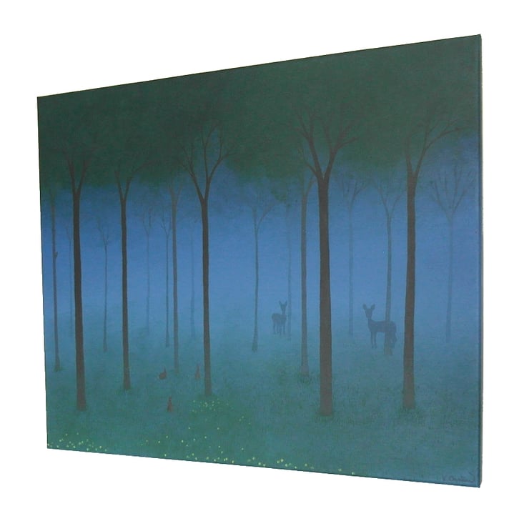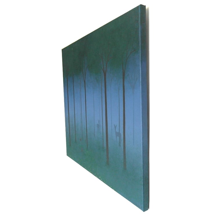 This original forest art is painted in acrylic on a 50cm x 60cm (19.7" x 23.6") canvas. The image carries on over the edges of the canvas so framing isn't needed and the canvas has a string on the back so it is ready to hang.
