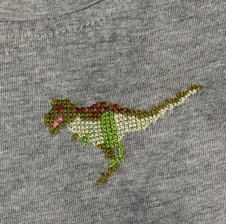 Dinosaurs are a favourite of little boys and girls. I have even once been asked to embroider one on a pink shirt! Although I have stitched various other dinosaurs, the T-rex has been far and away the most popular.
