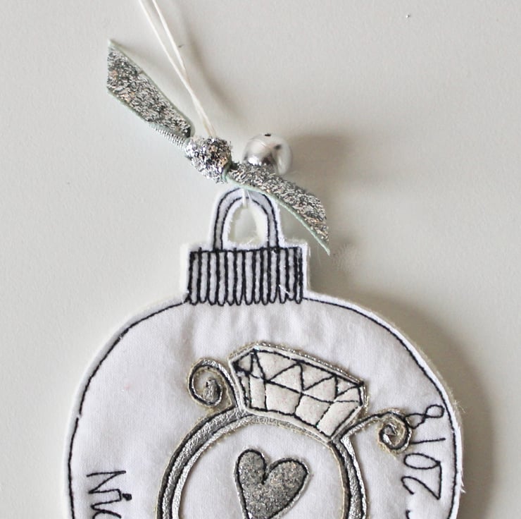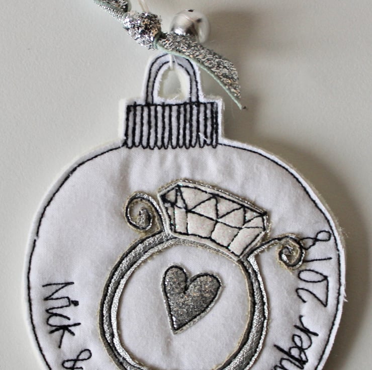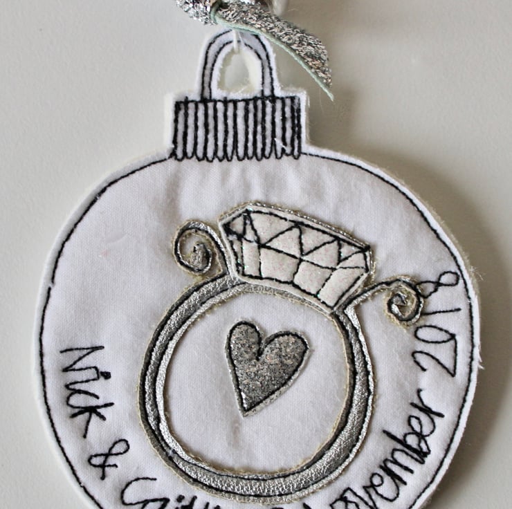 A personalised engagement cotton and wool felt bauble.