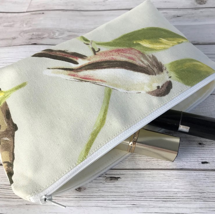 A handy cosmetic bag which can be used to store your make up and could also be used as a pencil case. The bag, with its lovely summery pattern, would make a lovely gift, particularly for someone who loves birds.