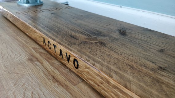 You will see some signs of its previous commercial life as a scaffold board including nail holes, dents and cracks which give it such a one off and preloved feel, on this example you can see the brand 'ACTAVO' which has been branded into the wood, if I use any wood which has branding into it I will always try my best to have these on show but this may not always be possible.