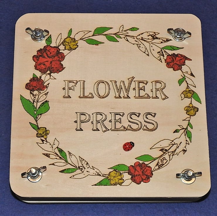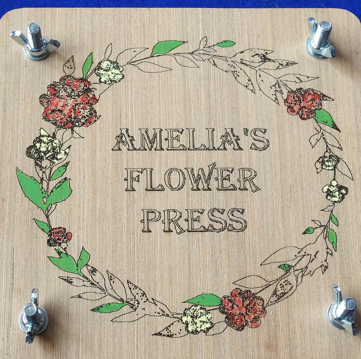 I have made some flower presses and can personalise them with a name or phrase using a laser engraver.