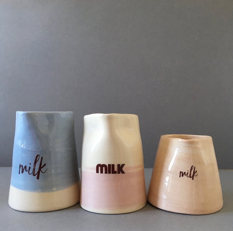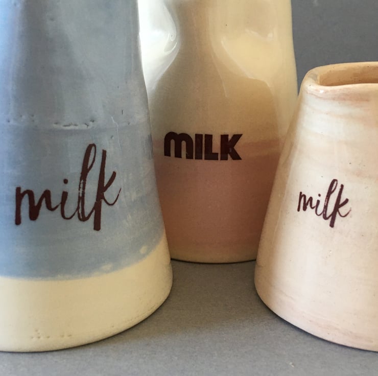 All 3 state the obvious, but I can't resist a decal. They all have the word "Milk" in varying, favourite fonts.Maybe you have a friend who likes "Whole milk" One that likes "Skinny milk" and maybe a chum who likes an alternative type of milk? If they all visit on the same day, you have a dilemma!! They will need a jug each!
