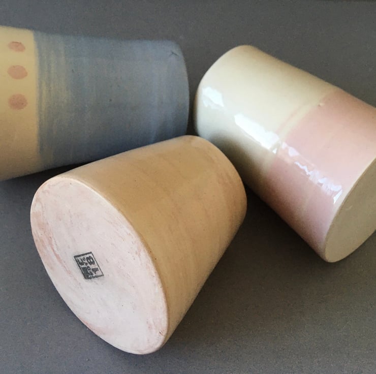 Pourer 2: A tiny bit shorter than No:1 with a strip of baby pink. (H:7.5cm D:6.3cm)