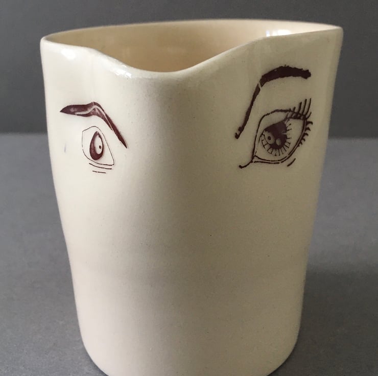 This Eye, eye juglet will be posted ASAP and by 1st class delivery. If you are buying a whole heap of my pots, firstly, I salute you and secondly, I promise to refund any excessive postage cost. I will carefully squeeze in as many pots as possible and always keep postage costs as low as I can. Feel free to mail me before purchasing if you have any concerns.