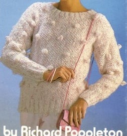 . A smaller cabled round necked sweater, embellished with ribbons.