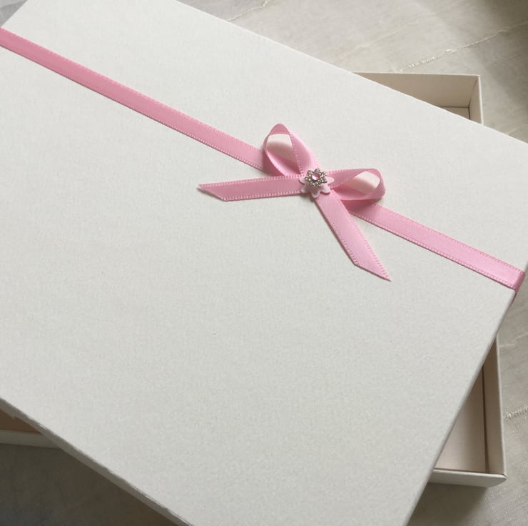 This handmade personalised card is A5 in size ( 210mm x 150mm) and is on 300gsm heavyweight linen cardstock. This pink bunting card can be made for any little girl’s special occasion and can be for any age. I can fit up to seven letters on the bunting. The card is embellished with ribbons and gems.