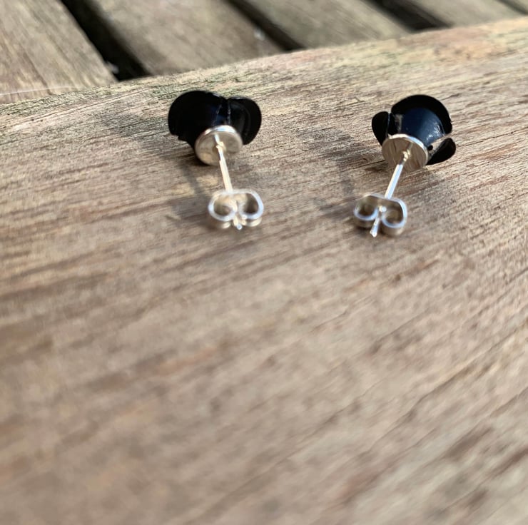 Black metal rose on silver plated earring back with butterfly back.