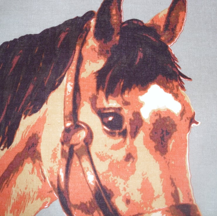 A beautiful brown horse with a white flash down his nose standing looking over a stable door cushion , lovely and soft cushion ,would look good in any lounge, sitting room, study or office on any settee or armchair or in a conservatory or summer house or on a bed.
