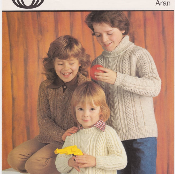 Vintage Knitting Pattern 4289: from Sirdar, 3 Aran Children’s Sweaters