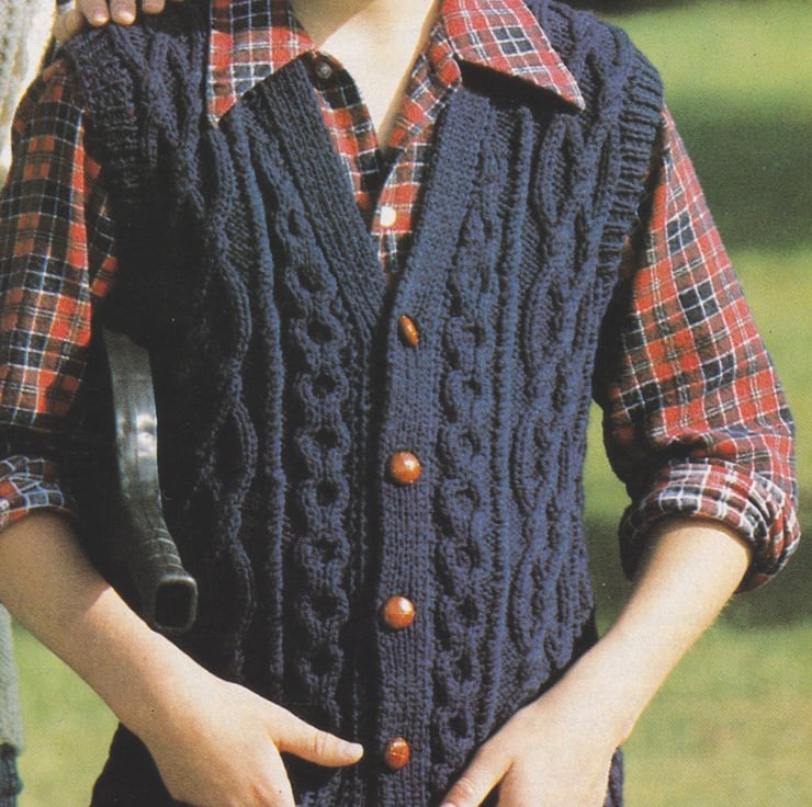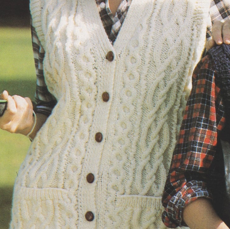 Just the thing for a spring day a highly patterned, long line waistcoat.