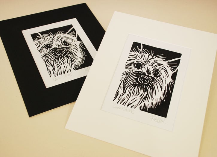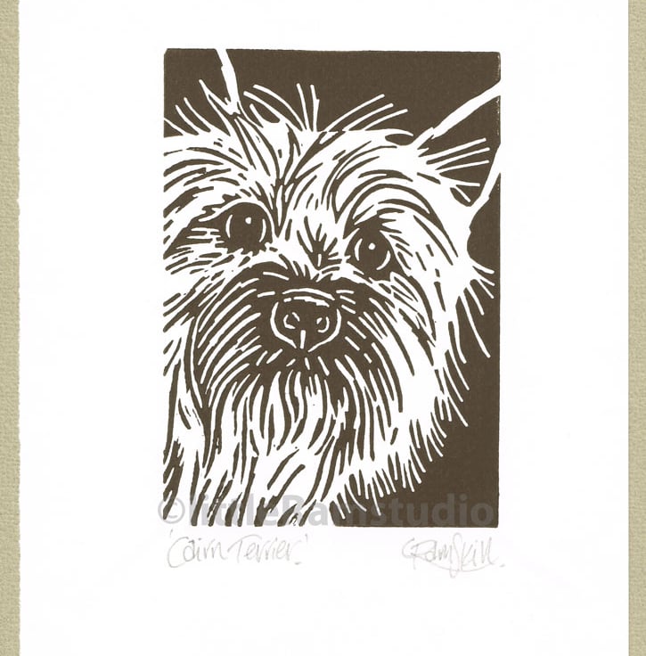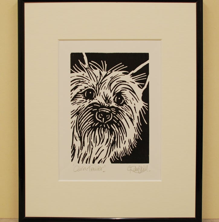 'Carin Terrier Dog' - Original, hand printed linocut, printed on hand press in black ink. Signed and titled in pencil by the artist.