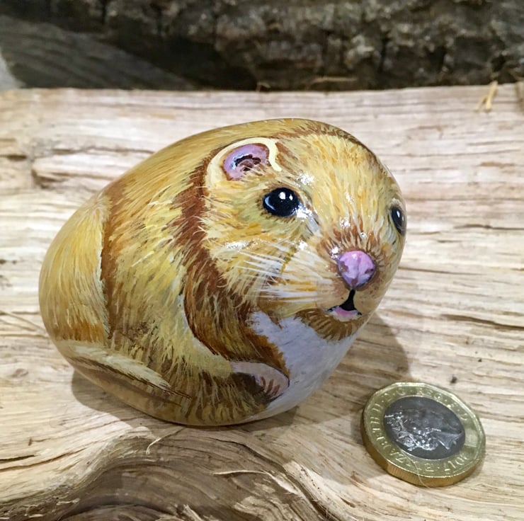 This little gerbil has been hand painted onto a smooth stone and glazed for a glossy protective finish