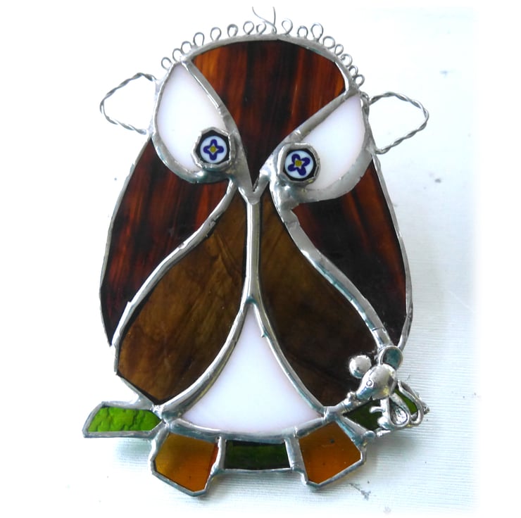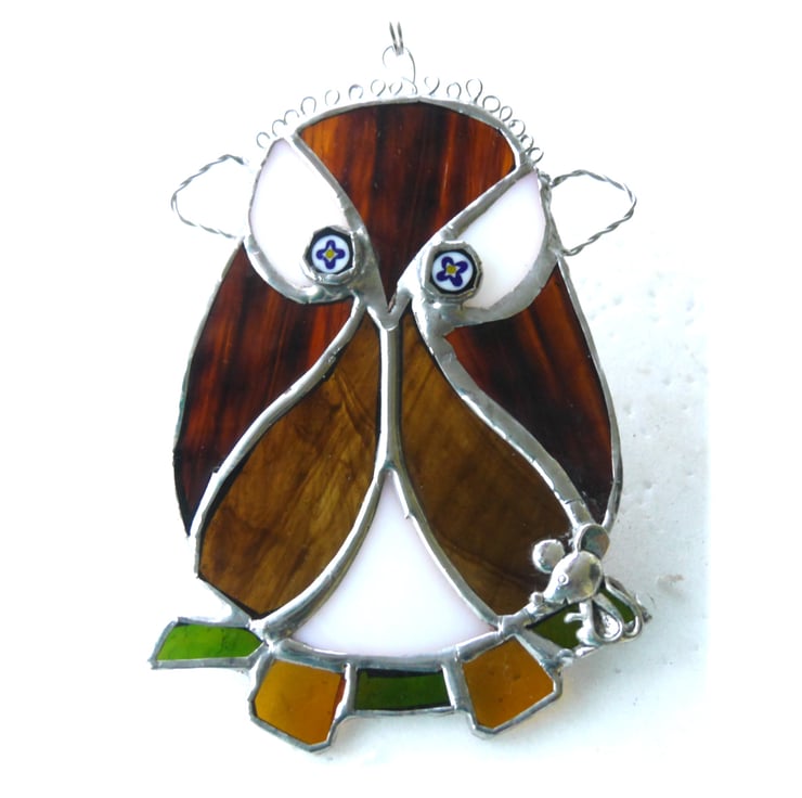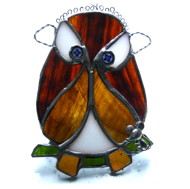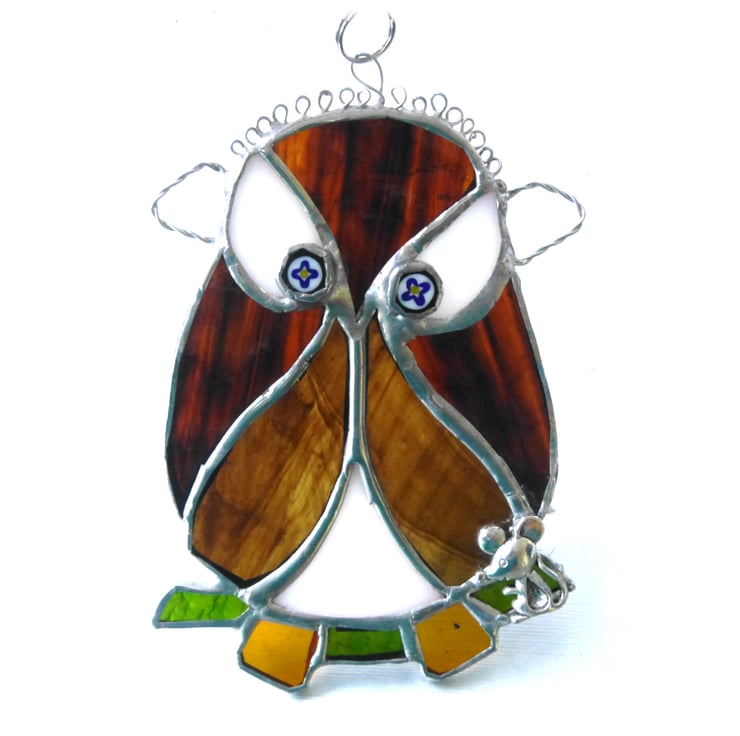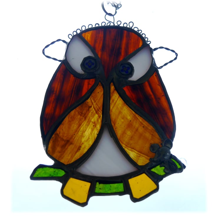The suncatcher hangs from a little chain which is securely attached to the top of the owl.