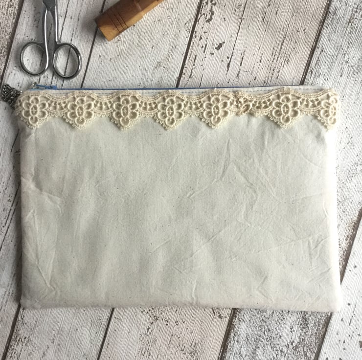 Rescued this tray cloth from a charity shop in Exeter whilst on a break and decided to cut it into two and upcycle it into zipped bags. There is no date on the piece and I wonder who sat and created it and how it came to find itself in a basket under a desk in the basement of a shop. I hope that in say, another 50 years maybe someone else will find it, a little worse for wear and use some of the fabric to make yet another item and give it a new lease of life and so its story will continue giving pleasure to yet another generation.