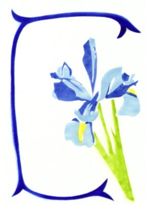 Card depicting an Iris flower in a border. I made the original design for this iris card from one of my hand cut stencil designs - I airbrushed the original design from the stencils which I had made from my own original pencil drawings. I have scanned the blue flower card and now print the cards with Epson Claria inks with an inkjet printer onto Bockingford 190 gsm digital fine art paper.