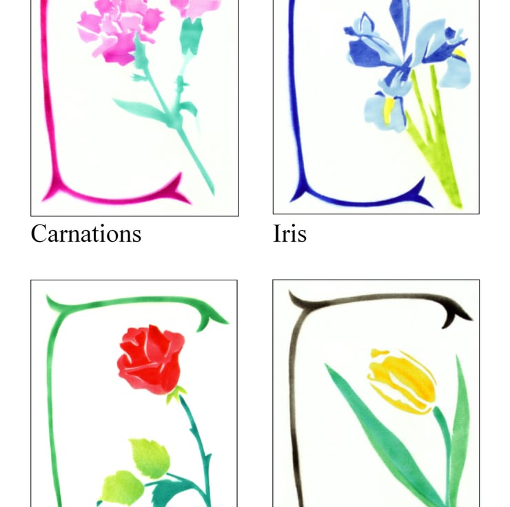 Or buy a set of flower note cards of the 4 different flower cards with borders for £10.00 - Carnations, Iris, Rose and Tulip.