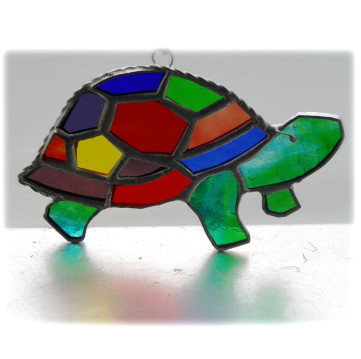 A stained glass suncatcher made using the Tiffany copper foil technique.