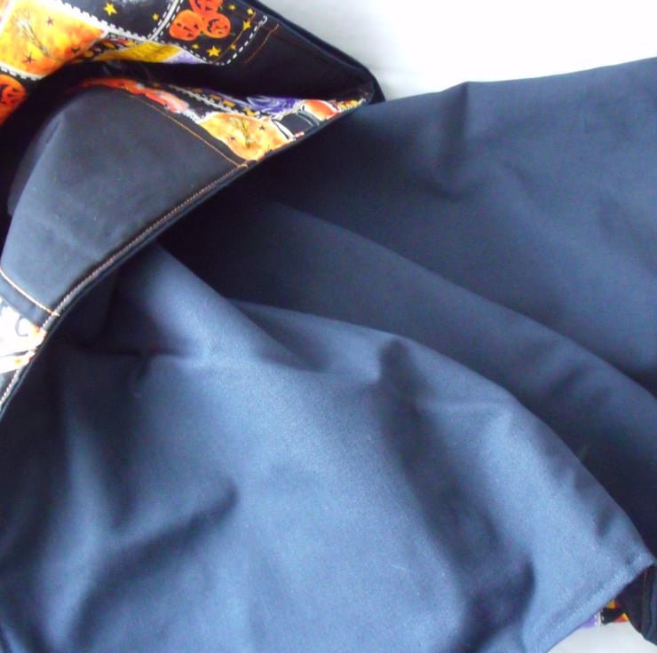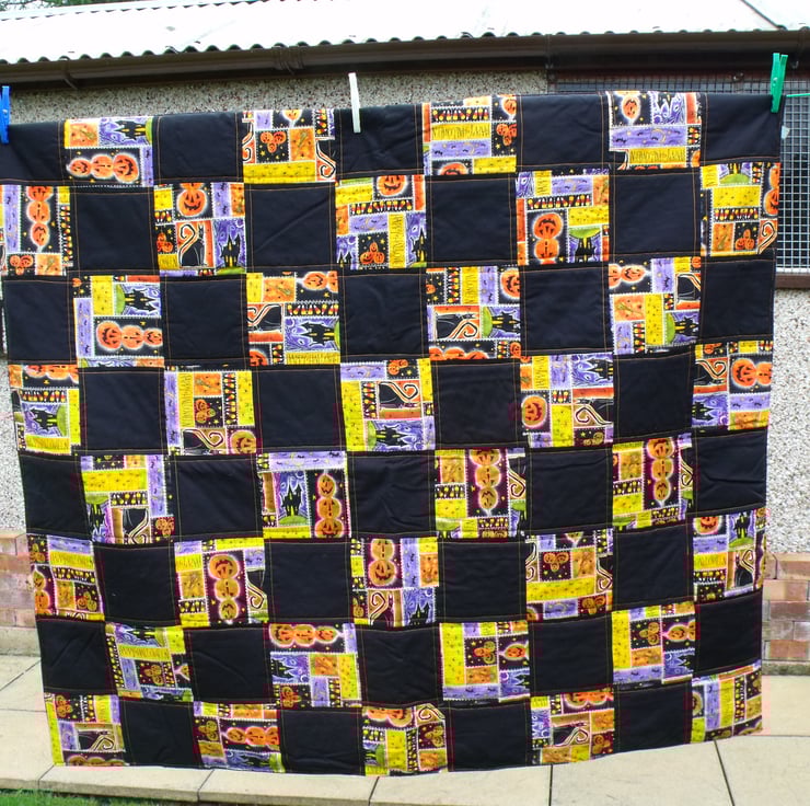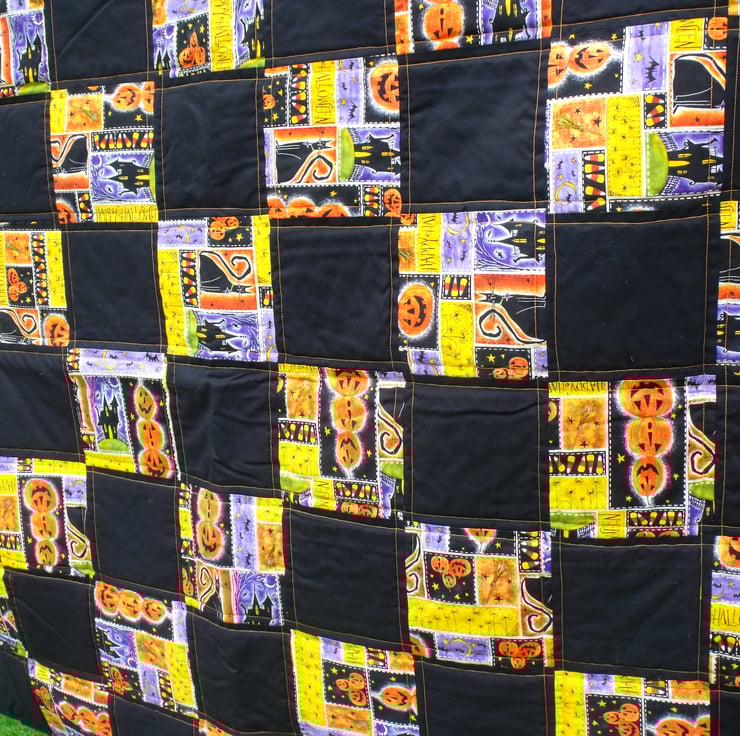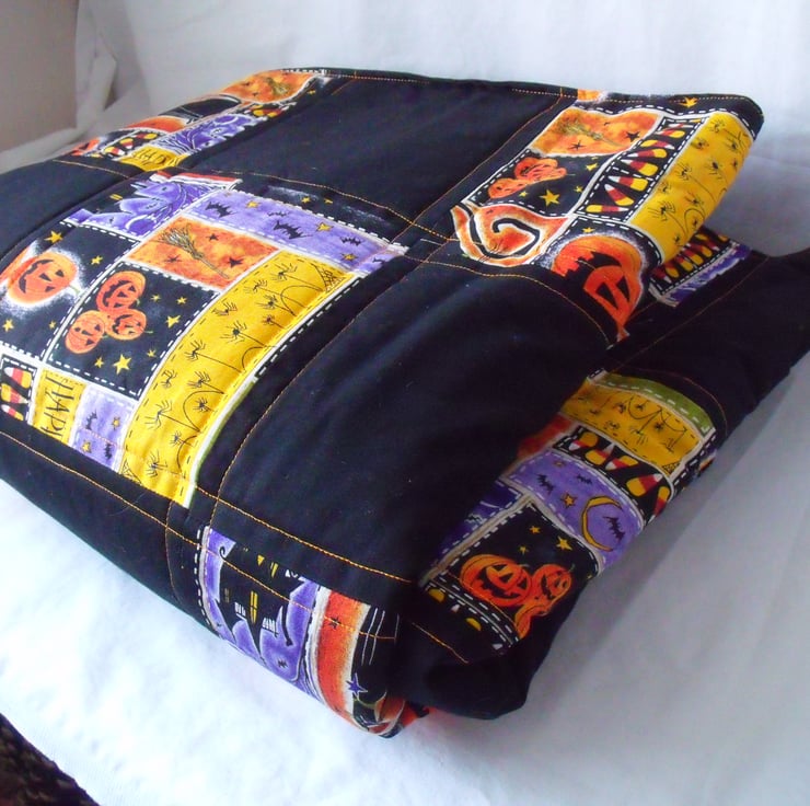Here we have a Halloween quilted throw. Trick or treat blanket.