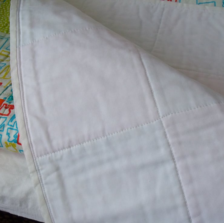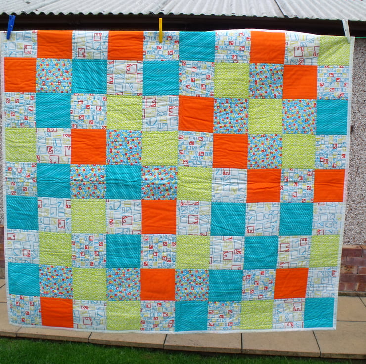 This quilt can be used to throw over the bottom of a single bed, a chair throw, a lap quilt, to drape over the back of the sofa, or cot/crib blanket.