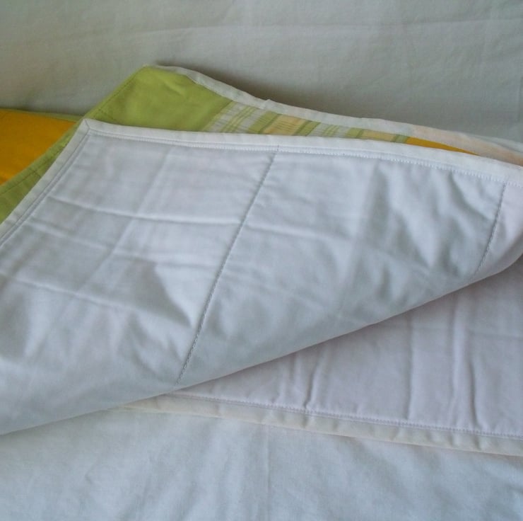 This quilt can be used to throw over the bottom of a single bed, a chair throw, a lap quilt, cot blanket, crib quilt or to drape over the back of the sofa.