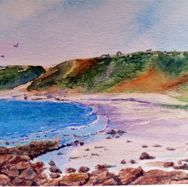 The painting is produced using Winsor & Newton artist grade paint on 425 gsm NOT watercolour paper, enhanced with oil pastels to add dimension and texture to the foreground.