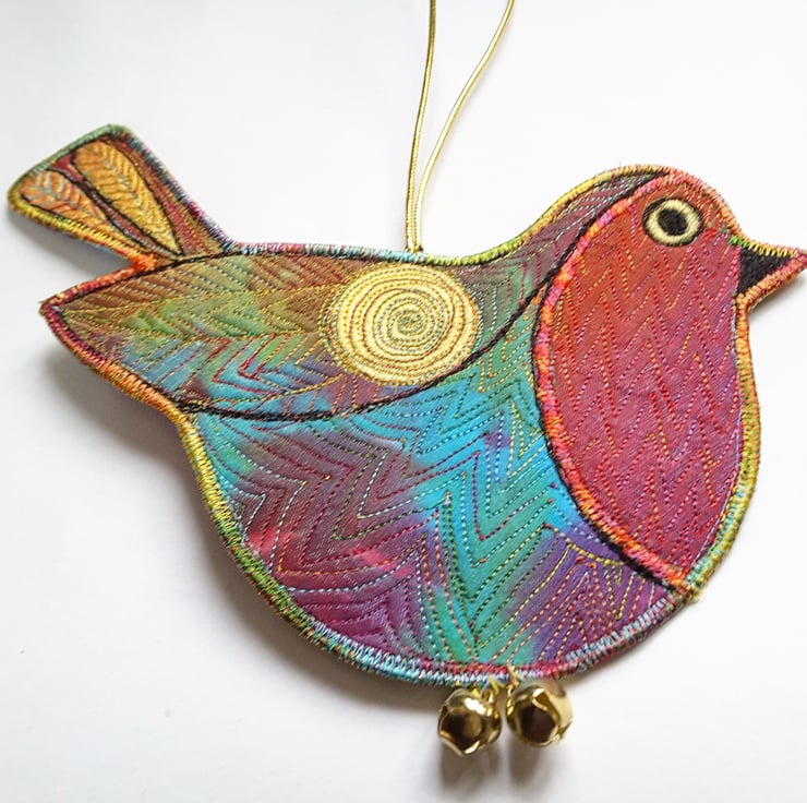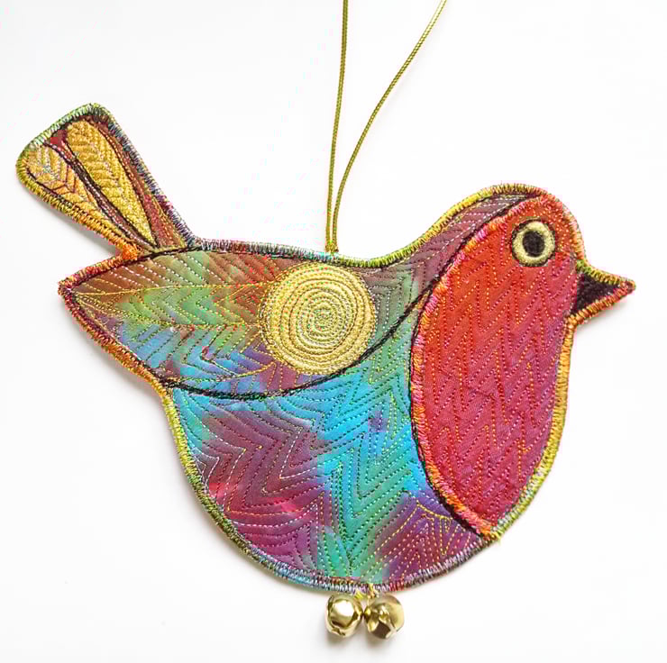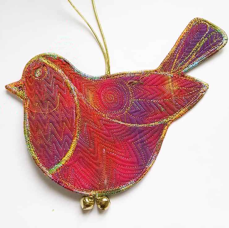 Made from layers of fabric including silk and cotton using the free machine embroidery style of sewing
