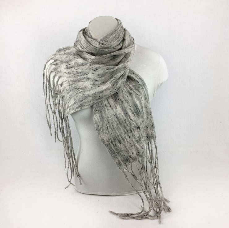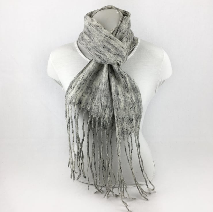 Seconds Sunday - Felted scarf in grey "tweed" with tassels