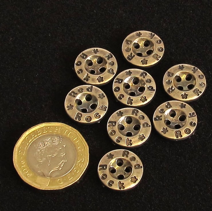 Eight strong, metal buttons with the logo ‘Red Rock’ around the face.