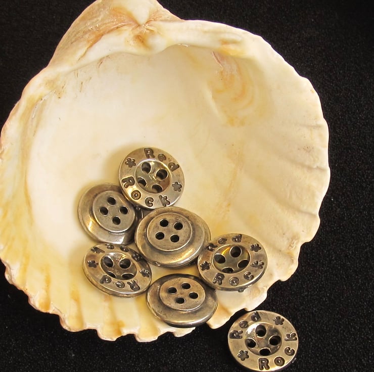 Vintage Buttons: ‘Red Rock’, Purposely Tarnished, Silver-like, 14mm x8