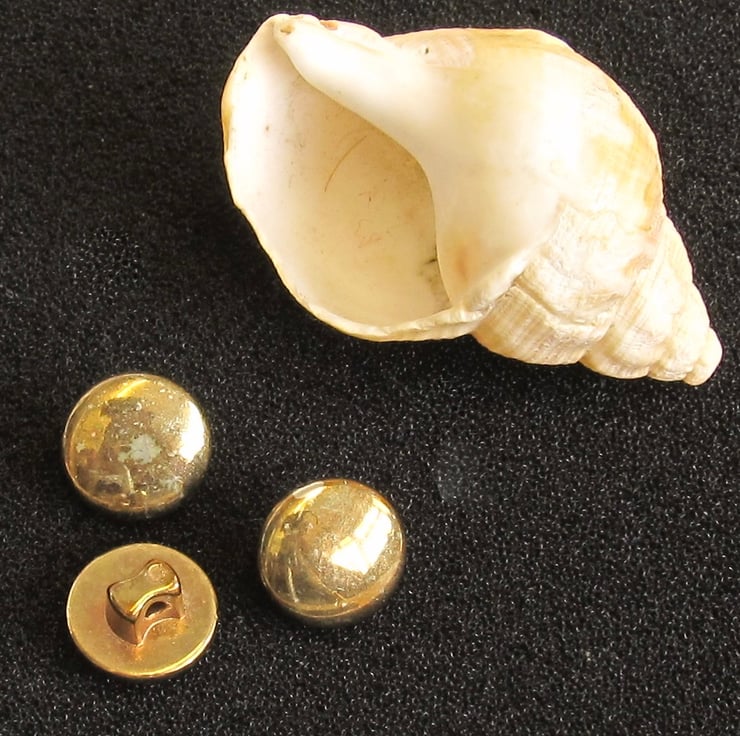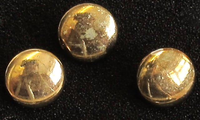 These buttons look to be cast metal (probably copper based) as I cannot see a join, weld or crimp mark anywhere.