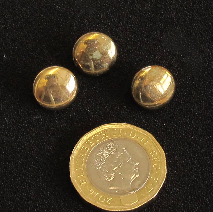 At 11mm these 3 metal buttons are perfect to compliment a statement piece but small enough not to take over the look.