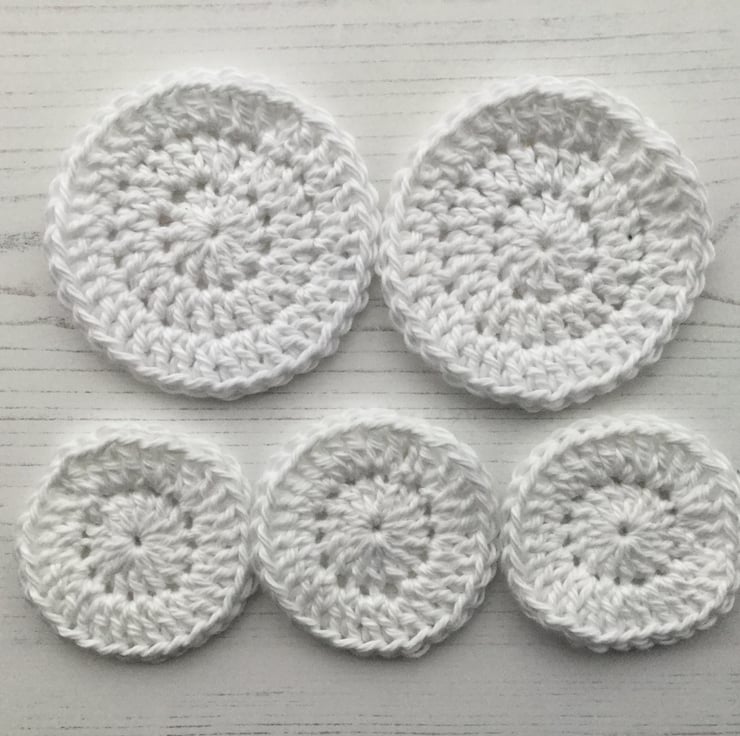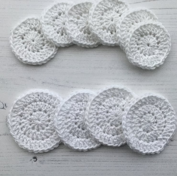 I have crocheted these makeup remover pads using a lovely soft cotton yarn in white. Available to buy in the following options please select which when placing order.