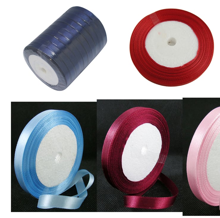 10mm wide satin ribbon, single faced. 25 yard roll, approx 22 meters.