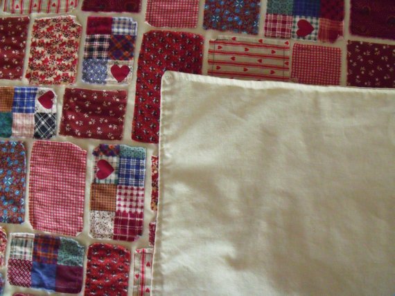 Sewn onto sand coloured Laura Ashley plain cotton front and back. The back is plain.