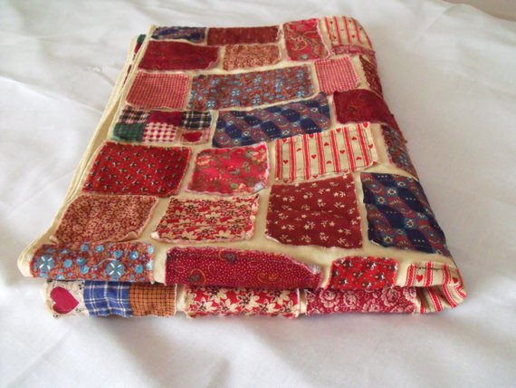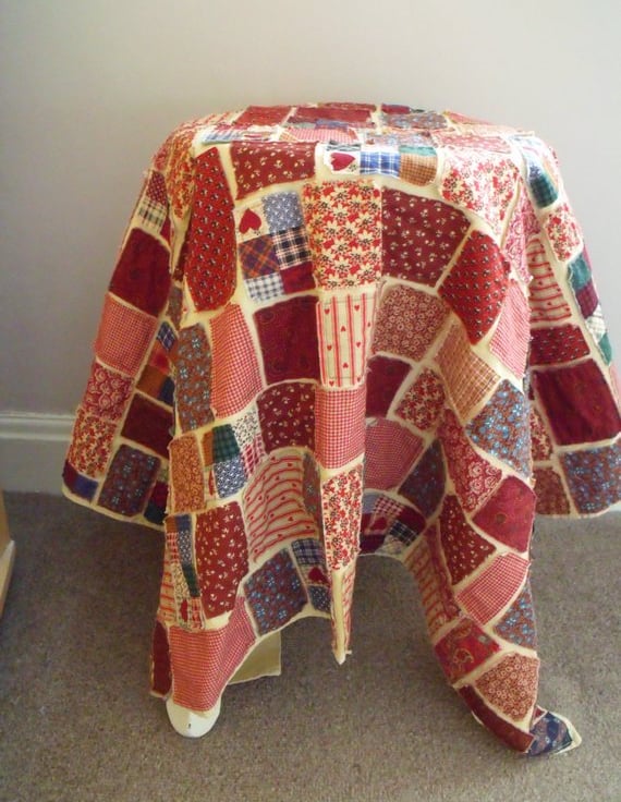 Here is a primitive style patchwork ticker tape throw, raw edged throw known as ticker tapes.