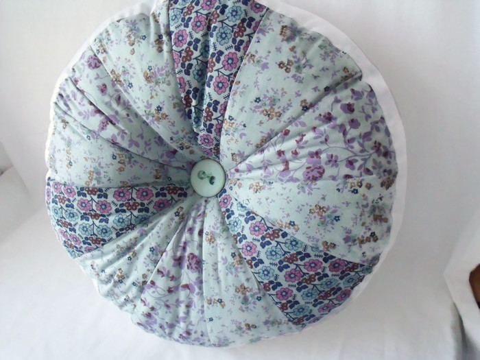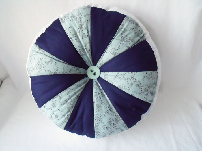 Plump round patchwork sprocket pinwheel scatter cushion, large and comfy accent pillow