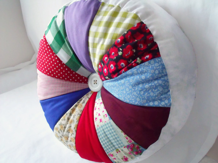 I made this multi coloured plump cushion to brighten up a dull corner of your room.