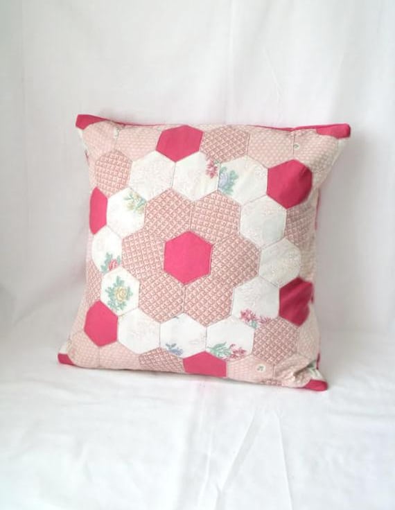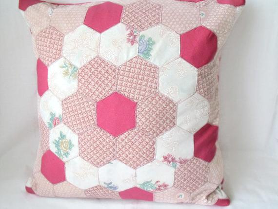 Here we have a unique patchwork hexagon accent throw pillow slip. Statement cushion cover.