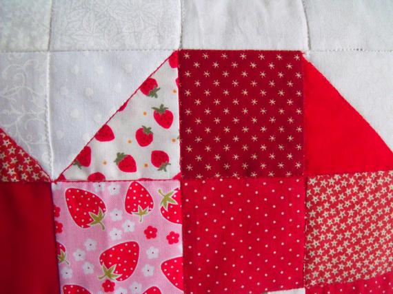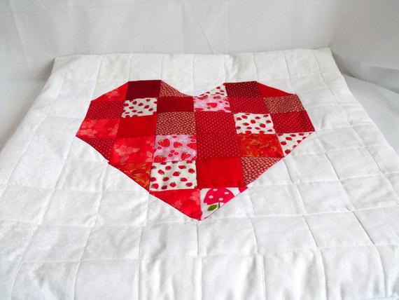 Sewn with various pieces of red fabric in the heart shape, the white area has been sewn using white and ivory tone on tone 100% cotton.