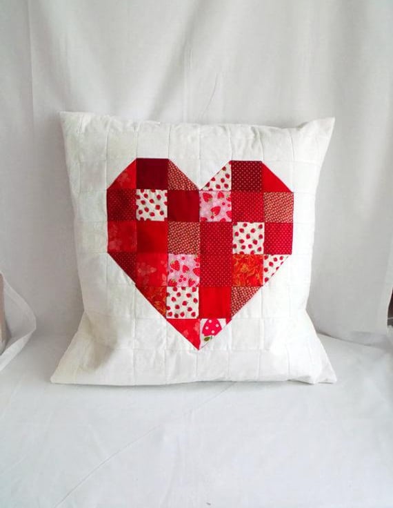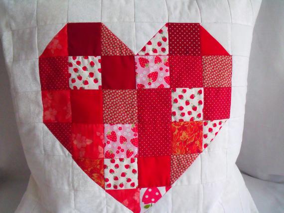 Here we have a quilted accent throw pillow slip. Heart Patchwork cushion cover.
