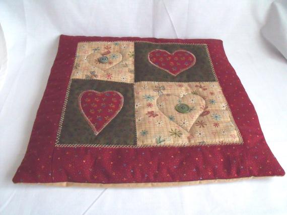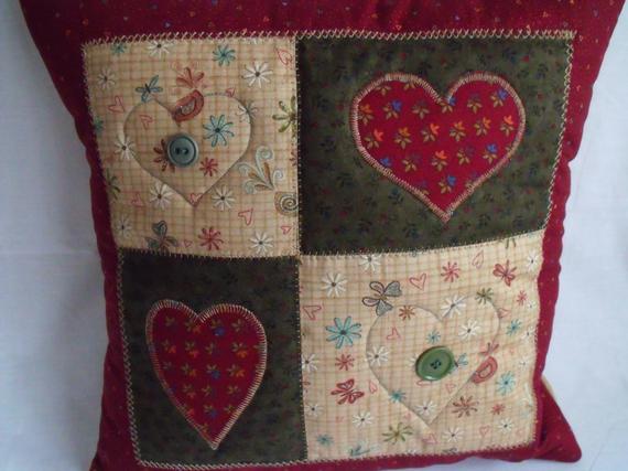 Here we have a folk art style quilted patchwork accent throw pillow slip. Patchwork cushion cover.