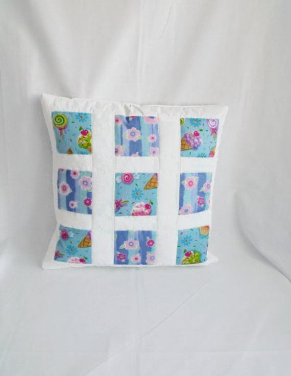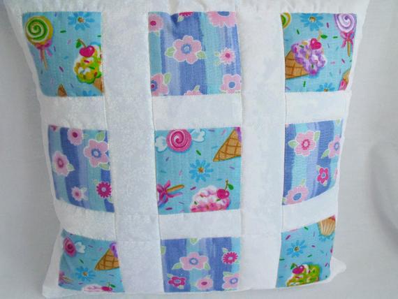I decided to make a statement pillow, great for a teenage girl as the print has buns, flowers and ice cream on it.