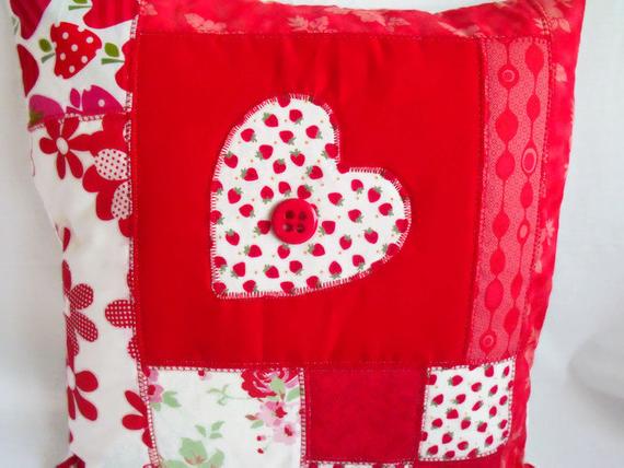 Here we have a quilted accent throw pillow slip. Valentine Patchwork cushion cover.