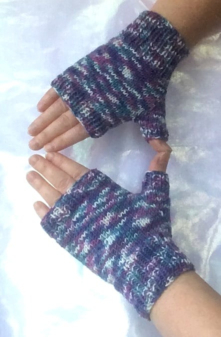 About a decade ago, I worked in a particularly cold office, so I made some fingerless mitts from a pattern in a magazine. My hands were so cold, I wanted something I could wear to type. I fell in love with them. I kept finding different uses for them, and found myself wearing them more and more.